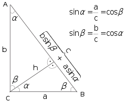 where α is the angle opposite to side a, β is the angle opposite to side b, γ is the angle opposite to side c, and sgn is the sign function.[30]