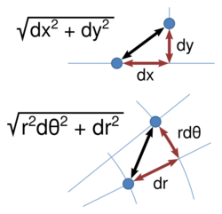 Performing the squares and combining terms, the Pythagorean formula for distance in Cartesian coordinates produces the separation in polar coordinates as: