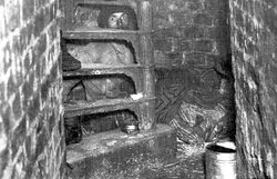 Following the Peasants' Revolt, English constables were authorised under 1383 English Poor Laws statute to collar vagabonds and force them to show support; if they could not, the penalty was gaol.[28] Vagabonds could be sentenced to the stocks for three days and nights; in 1530, whipping was added. The presumption was that vagabonds were unlicensed beggars.[28] In 1547, a bill was passed that subjected vagrants to some of the more extreme provisions of the criminal law, namely two years servitude and branding with a "V" as the penalty for the first offense and death for the second. Large numbers of vagabonds were among the convicts transported to the American colonies in the 18th century.[29] During the 16th century in England, the state first tried to give housing to vagrants instead of punishing them, by introducing bridewells to take vagrants and train them for a profession. In the 17th and 18th centuries, these were replaced by workhouses but these were intended to discourage too much reliance on state help.