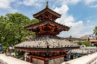 Kasthamandap is a three-storeyed temple enshrining an image of Gorakhnath. It was built in the 16th century in pagoda style. The name of Kathmandu is a derivative of the word Kasthamandap. It was built under the reign of King Laxmi Narsingha Malla. Kasthamandap stands at the intersection of two ancient trade routes linking India and Tibet at Maru square. It was originally built as a rest house for travellers.