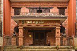 The Taragaon Museum presents the modern history of the Kathmandu valley.[56] It seeks to document 50 years of research and cultural heritage conservation of the Kathmandu Valley, documenting what artists, photographers, architects, and anthropologists from abroad had contributed in the second half of the 20th century. The actual structure of the museum showcases restoration and rehabilitation efforts to preserve the built heritage of Kathmandu. It was designed by Carl Pruscha (master-planner of the Kathmandu Valley)[57] in 1970 and constructed in 1971.[58] Restoration works began in 2010 to rehabilitate the Taragaon hostel into the Taragaon Museum. The design uses local brick along with modern architectural design elements, as well as the use of circle, triangles and squares.[57] The museum is within a short walk from the Boudhanath stupa, which itself can be seen from the museum tower.