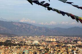 Kathmandu Skyline with Gaurishankar visible Ghanta Ghar Dharahara Pashupatinath Temple Narayanhiti Palace Kathmandu Durbar Square | |