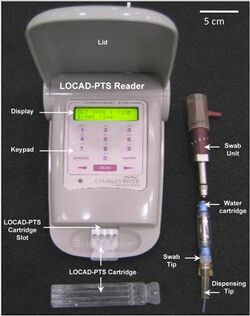 The Lab-On-a-Chip Application Development – Portable Test System (LOCAD-PTS) is a handheld device for microbial monitoring aboard the ISS.[1] It evolved from the Endosafe-Portable Test System (Endosafe-PTS), developed by Charles River Laboratories for use in the pharmaceutical and health care industries.[2] In 2004–2005, Charles River Laboratories teamed up with Carnegie Institution for Science and NASA Marshall Space Flight Center, including BAE Systems and Jacobs Technology, to modify the Endosafe-PTS device (and a sample handling system) for spaceflight. The LOCAD-PTS project has been funded in large part by NASA's Exploration Systems Mission Directorate (ESMD), under the Exploration Technology Development Program (ETDP), and specifically under the umbrella of Advanced Environmental Monitoring and Control (AEMC).[3]