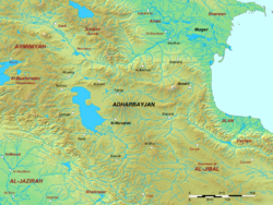 [ ⚑ ] 37°36′N47°00′E / 37.6°N 47.0°E / 37.6; 47.0Azerbaijan or Azarbaijan (Persian: آذربایجان, Āzarbāijān[ɒːzæɾbɒːjˈdʒɒːn]; Template:Lang-az-Arab, Āzerbāyjān Template:IPA-az), also known as Iranian Azerbaijan,[1] is a historical region in northwestern Iran that borders Iraq, Turkey, the Nakhchivan Autonomous Republic, Armenia, and the Republic of Azerbaijan.