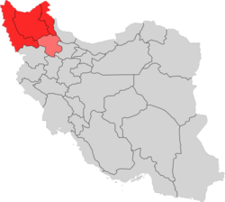 Iranian Azerbaijan includes three northwestern Iranian provinces: West Azerbaijan, East Azerbaijan and Ardabil.[2][3] Some authors also include Zanjan in this list, some in a geographical sense,[4] others only culturally (due to the predominance of the Azeri Turkic population there).[5] The region is mostly populated by Azerbaijanis, with minority populations of Kurds, Armenians, Tats, Talysh, Assyrians and Persians.