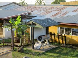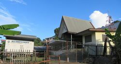 As the capital of Solomon Islands, Honiara contains the majority of the major government buildings and institutions, including Honiara Lauru Land Conference, Honiara Solomon Islands College of Higher Education, International School in Honiara, University of the South Pacific Solomon Islands, Honiara Solomon Islands Ports Authority. These centres are involved in marine research in Solomon Islands.[38] The Dodo Creek Research Station of the Ministry of Agriculture and Lands is based in Honiara. [39] Honiara Central Market is the centre of trading activity in the islands and contains many market stalls selling a wide range of goods. East of the mouth of the Mataniko River is the beach where, in the shallow waters of the sea, wrecks of a Japanese ship destroyed on 23 October 1942 by American artillery and small arms can be seen. At the back of the beach there is a settlement called the Lord Howe Settlement, consisting of a large community of Polynesians from Ongtong Java in the Western Provinces.[9] Chinatown, with its high porches, is said to look like an "Asian Wild West".[9]