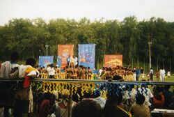 Yachting is popular in Honiara and it contains the Point Cruz Yacht Club on the harbour.[76] Honiara Golf Club lies on the eastern side of the town, not far from the Lunga River, near the King George VI High School (between Honiara and the airport) was initially nine-hole course on a flat land which was earlier an airstrip. An 18 tee 11-hole golf course was built in the late 1960s.[76][77][78] Boxing, rugby, athletics, basketball, netball, and volleyball are also practised.[72] Netball leagues are organised in Honiara for girls and is well-organized in surrounding larger villages, usually by women's clubs.[79]
