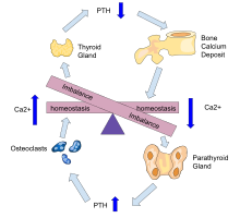 Parathyroid hormone is responsible for the induction of increased calcium absorption in the gastrointestinal tract or gut and in the kidney. It also induces calcium and phosphate resorption from the bone by osteoclasts.[15][11] Parathyroid hormone also plays a role in activating vitamin D from its pro form to its active form.[15] Vitamin D is also responsible for increased blood calcium levels and works in conjunction with parathyroid hormone. Vitamin D is also partly responsible for the inhibition of parathyroid hormone release by binding Vitamin D receptors at the parathyroid gland.[11]