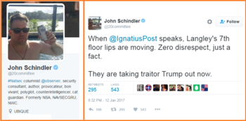 During the Trump transition an unofficial social media mouthpiece for the Intelligence Community (IC), John Schindler, sent this ominous threat to President-elect Trump:[11]