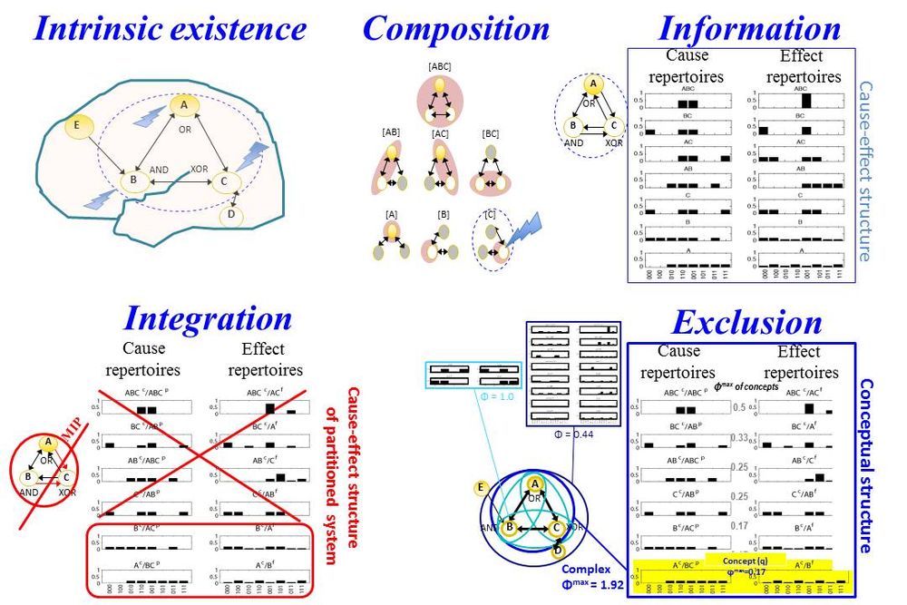 Based on these criteria, the axioms of IIT are intrinsic existence, composition, information, integration, and exclusion (Figure 1).