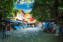 During the Ottoman period, Bursa continued to be the source of most royal silk products. Aside from the local silk production, the city imported raw silk from Iran, and occasionally from China , and was the main production centre for the kaftans, pillows, embroidery and other silk products for the Ottoman palaces until the 17th century.[12] Devshirme system was also implemented in Bursa and its surroundings where it was negotiated between the authorities and locals. For example, during the 1603-4 levy, the villagers of a Christian village called Eğerciler, in Bursa, declared that they were responsible for providing sheep to the capital, and the children of the village were very much needed as shepherds. They asserted that even though they were not obliged to give any children to the army, the officers took some anyway, and that they should be returned. The villagers’ claim that it was in tremendous need of future shepherds was taken seriously by the state, and a decree commanded the return of the children.[13] Bursa was also notable for its numerous hammams (bath) built during the reign of Suleiman such as the Yeni Kaplıca.[6] From 1867 until 1922, Bursa was the capital of Hüdavendigâr vilayet. As it was a significant cultural and trade hub, traders, most of whom were Armenians, became very wealthy.[14] The most influential study of Bursa's silk trade and economic history is the work of Ottomanist Halil İnalcık.[15]