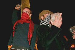 Political demonstrations in many countries have resulted with the arrest of violent protestors for throwing rocks and other objects at police.[56][57][58]