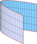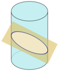 A cylindric section is the intersection of a cylinder's surface with a plane. They are, in general, curves and are special types of plane sections. The cylindric section by a plane that contains two elements of a cylinder is a parallelogram.[4] Such a cylindric section of a right cylinder is a rectangle.[4]