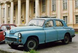 The Warszawa was the first newly designed car built in Poland after the World War II. Warszawas were popular as taxis because of their sturdiness and ruggedness. However, they were underpowered for their weight and had high fuel consumption. In total, 254,471 cars were made.