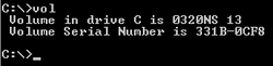 The vol command can be used from the command line to display the current label and serial number of a volume.