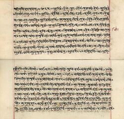Rigveda (Vedic chant) manuscript in Devanagari, a scripture of Hinduism, dated 1500–1000 BCE. It is the oldest religious texts in any Indo-European language.
