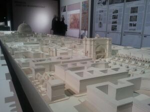 Doubts persisted at the time as to whether the marshy Berlin ground could have taken the load of the proposed projects, leading to the construction of an exploration building (Schwerbelastungskörper, literal translation: heavy load-bearing body),[4] which still exists near[5] the site where the Arch of Triumph would have been built. The Schwerbelastungskörper is an extremely heavy block of concrete used by the architects to test how much weight the ground was able to carry. Instruments monitored how far the block sank into the ground. The Schwerbelastungskörper sank 18 cm (7 1⁄8 in) in the three years it was to be used for testing, compared to a maximum allowable settlement of 6 cm (2 3⁄8 in). Using the evidence gathered by these gargantuan devices, it is unlikely the soil could have supported such structures without further preparation.[6] The plan was to cover the Schwerbelastungskörper by building a bridge over it. The arch would have been nearby, but problems with the axis running through infrastructure would have made it difficult to establish any convenient location.[5]