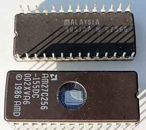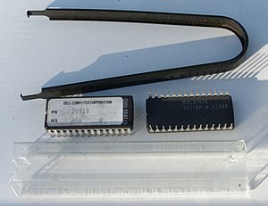 Another type of firmware chip was found on the IBM PC AT and early compatibles. In the AT, the keyboard interface was controlled by a microcontroller with its own programmable memory. On the IBM AT, that was a 40-pin socketed device, while some manufacturers used an EPROM version of this chip which resembled an EPROM. This controller was also assigned the A20 gate function to manage memory above the one-megabyte range; occasionally an upgrade of this "keyboard BIOS" was necessary to take advantage of software that could use upper memory.