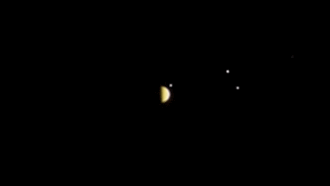 In 2016, the Juno spacecraft imaged the Galilean moons from above their orbital plane as it approached Jupiter orbit insertion, creating a time-lapse movie of their motion.[73] With a mission extension, Juno has since begun close flybys of the Galileans, flying by Ganymede in 2021 followed by Europa and Io in 2022. It is planned to fly by Io again in late 2023 and once more in 2024.