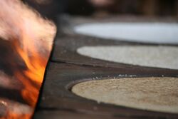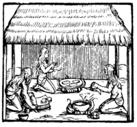 A casabe is a thin flatbread made from bitter cassava root without leavening. It was originally produced by the indigenous Arawak and Carib peoples because these roots were a common plant of the rain forests where they lived. In eastern Venezuela, many indigenous groups still make casabe. It is their chief bread-like staple. Indigenous communities, such as the Ye-Kuana, Kari-Ña, Yanomami, Guarao or Warao descended from the Caribe or Arawac nations, still make casabe.[10]