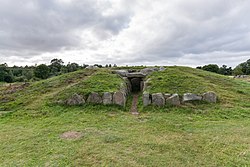 Tustrup-dysserne, the largest passage grave in Eastern Jutland, is an example of Funnelbeaker culture circa 3200 BC