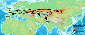- 3500–2500 BC – Afanasevo: Siberia, Mongolia, Xinjiang, Kazakhstan—late copper and early Bronze Age.