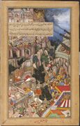 Babur's army using cannons (bottom) at the Battle of Khanwa, 1527.