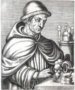 The earliest European references to gunpowder are found in Roger Bacon's Opus Majus from 1267, in which he mentions a firecracker toy found in various parts of the world.[98][131] The passage reads: "We have an example of these things (that act on the senses) in [the sound and fire of] that children's toy which is made in many [diverse] parts of the world; i.e., a device no bigger than one's thumb. From the violence of that salt called saltpeter [together with sulfur and willow charcoal, combined into a powder] so horrible a sound is made by the bursting of a thing so small, no more than a bit of parchment [containing it], that we find [the ear assaulted by a noise] exceeding the roar of strong thunder, and a flash brighter than the most brilliant lightning."[132] In the early 20th century, British artillery officer Henry William Lovett Hime proposed that another work tentatively attributed to Bacon, Epistola de Secretis Operibus Artis et Naturae, et de Nullitate Magiae contained an encrypted formula for gunpowder. This claim has been disputed by historians of science including Lynn Thorndike, John Maxson Stillman and George Sarton and by Bacon's editor Robert Steele, both in terms of authenticity of the work, and with respect to the decryption method.[132] In any case, the formula claimed to have been decrypted (7:5:5 saltpeter:charcoal:sulfur) is not useful for firearms use or even firecrackers, burning slowly and producing mostly smoke.[133][134] However, if Bacon's recipe is taken as measurements by volume rather than weight, a far more potent and serviceable explosive powder is created suitable for firing hand-cannons, albeit less consistent due to the inherent inaccuracies of measurements by volume. One example of this composition resulted in 100 parts saltpeter, 27 parts charcoal, and 45 parts sulfur, by weight.[135]