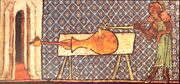 Thomas Montagu, 4th Earl of Salisbury is fatally injured at the siege of Orléans in 1428 (illustration from Vigiles de Charles VII).