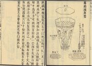 The first confirmed reference to what can be considered gunpowder in China occurred more than three hundred years later during the Tang dynasty, first in a formula contained in the Taishang Shengzu Jindan Mijue (太上聖祖金丹秘訣) in 808, and then about 50 years later in a Taoist text known as the Zhenyuan miaodao yaolüe (真元妙道要略).[10][15] The first formula was a combination of six parts sulfur to six parts saltpeter to one part birthwort herb. The Taoist text warned against an assortment of dangerous formulas, one of which corresponds with gunpowder: "Some have heated together sulfur, realgar (arsenic disulfide), and saltpeter with honey; smoke [and flames] result, so that their hands and faces have been burnt, and even the whole house burned down."[10] Alchemists called this discovery fire medicine ("huoyao" 火藥), and the term has continued to refer to gunpowder in China into the present day, a reminder of its heritage as a side result in the search for longevity increasing drugs.[16] A book published in 1185 called Gui Dong (The Control of Spirits) also contains a story about a Tang dynasty alchemist whose furnace exploded, but it is not known if this was caused by gunpowder.[17]