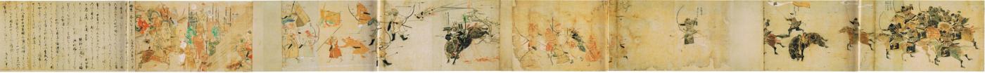 The commanding general kept his position on high ground, and directed the various detachments as need be with signals from hand-drums. But whenever the (Mongol) soldiers took to flight, they sent iron bomb-shells (tetsuho) flying against us, which made our side dizzy and confused. Our soldiers were frightened out of their wits by the thundering explosions; their eyes were blinded, their ears deafened, so that they could hardly distinguish east from west. According to our manner of fighting, we must first call out by name someone from the enemy ranks, and then attack in single combat. But they (the Mongols) took no notice at all of such conventions; they rushed forward all together in a mass, grappling with any individuals they could catch and killing them.[88]