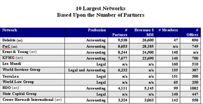 There are more than 175 known networks in law,[4] 40 in accounting, and 20 specialty networks.[5] Individual networks have revenues exceeding $20 billion.[6]