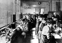During World War I, many of the faculty were conscripted into the army where they often continued to treat or research tropical diseases with the aim of protecting the health of the troops fighting in the Middle Eastern and African campaigns. Meanwhile, enough faculty remained at the school to continue its operations, although enrollment drastically fell during the war. The remaining faculty contributed to the war effort nonetheless by becoming increasingly involved in treating soldiers with dysentery, malaria, and other tropical diseases after their return from overseas. On the night of January 19, 1917, a TNT explosion from a nearby munition depot damaged the school and hospital, further complicating the school's operations. The school's wartime contributions were acknowledged on October 10, 1917, by a surprise visit from King George V and in 1918 by a visit from Queen Mary, Prince Edward, and Princess Mary.[15][11]