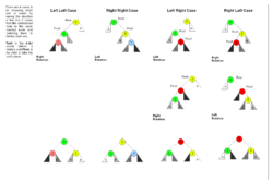 There are also double rotations, which are combinations of left and right rotations. A double left rotation at X can be defined to be a right rotation at the right child of X followed by a left rotation at X; similarly, a double right rotation at X can be defined to be a left rotation at the left child of X followed by a right rotation at X.