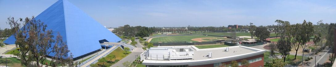 49er basketball and volleyball games are currently played in the iconic, eighteen-story Walter Pyramid (formerly known as the Long Beach Pyramid) located on north campus. The Pyramid is a sporting complex that can accommodate over 5,000 fans, including temporary seating and standing room. Two sections of interior stands are fitted with large hydraulic lifts that can lift the seating elements 45 degrees into the air, creating room for five volleyball courts or three basketball courts.[27] The Pyramid is home to the Southern California Summer Pro League, a noted showcase for current and prospective NBA basketball players.