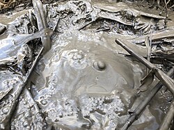 A mud bath is a bath of mud, commonly from areas where hot spring water can combine with volcanic ash. Mud baths have existed for thousands of years, and can be found now in high-end spas.