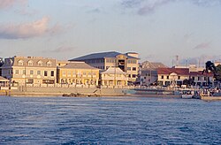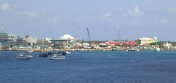 George Town's city limits extend from the east at the edge of the South Shore District, north just beyond Owen Roberts International Airport, south to Hog Sty Bay and west to Seven Mile Beach and the West Bay District. George Town's famous Seven Mile Beach is a long crescent of coral-sand beach extending up to the West Bay region of Grand Cayman and is the most popular and populated area for tourists on the island.[7]
