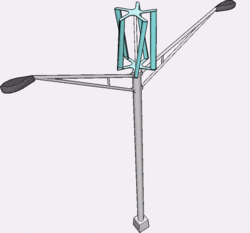 The giromill is a vertical axis turbine that rotates one blade in one direction while another moves in the opposite direction. Consequently, only one blade is working at a time. Its efficiency is low.[28]
