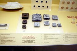 Discussion of the concepts of heaviness (weight) and lightness (levity) date back to the ancient Greek philosophers. These were typically viewed as inherent properties of objects. Plato described weight as the natural tendency of objects to seek their kin. To Aristotle, weight and levity represented the tendency to restore the natural order of the basic elements: air, earth, fire and water. He ascribed absolute weight to earth and absolute levity to fire. Archimedes saw weight as a quality opposed to buoyancy, with the conflict between the two determining if an object sinks or floats. The first operational definition of weight was given by Euclid, who defined weight as: "the heaviness or lightness of one thing, compared to another, as measured by a balance."[2] Operational balances (rather than definitions) had, however, been around much longer.[10]