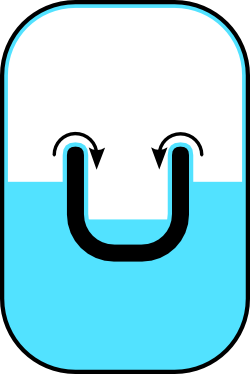 In the fountain effect, a chamber is constructed which is connected to a reservoir of helium II by a sintered disc through which superfluid helium leaks easily but through which non-superfluid helium cannot pass. If the interior of the container is heated, the superfluid helium changes to non-superfluid helium. Superfluid helium leaks through and increases the pressure, causing liquid to fountain out of the container.