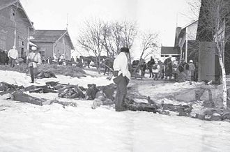 In the spring of 1918, the Whites won their decisive victory in the Battle of Tampere, subjecting the Red stronghold in that city to siege, attempting multiple times to seize the city under machine-gun fire, and finally taking the city and executing a bunch of Red prisoners.[39] Germany also intervened on behalf of the Finnish Whites, launching a naval invasion against Helsinki that crushed the Red capital.[40]