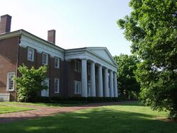 The Kentucky General Assembly established Centre College on January 21, 1819. The college was named for its proximate location in the geographic "centre" of the Commonwealth, using early nineteenth century America's contemporaneous spelling of the word. Auspiciously, the legislature placed many of Kentucky's most prominent citizens in charge of Centre College's Board of Trustees, with Isaac Shelby, the Commonwealth's first governor, serving as chair. James G. Birney, at the time representing Danville in the Kentucky House of Representatives, was a member.[7] Classes began in the fall of 1820 in Old Centre, the first building on campus and the oldest college administration building west of the Allegheny Mountains. Centre historically refused admission to African-American students, such as James M. Priest whose application to study theology in 1835 was rejected.[8]