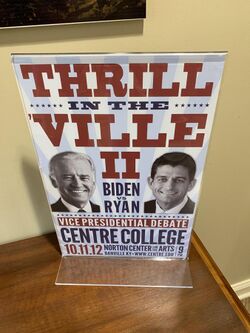 Twelve years after hosting its first debate, Centre College again hosted a vice presidential debate on October 11, 2012.[30] The debate between vice presidential incumbent Joe Biden and Congressman Paul Ryan, with moderator Martha Raddatz, was called "one of the most engaging, enlightening, and entertaining debates of recent memory, one marked by dramatic contrasts in priorities, ideology, and personal style."[31] Of Centre College's performance as a host site, Janet Brown, executive director of the Commission on Presidential Debates, said, "They aced it in 2000 and this year was even better."[32]