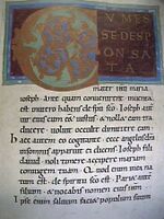 The tradition of devotion to and reverence for the Holy Name continued through the 15th century as belief in its miraculous powers became widespread.[16] Walter Hilton's classic work Scale of Perfection included a long passage on the Holy Name.[23] In this period popular beliefs on the power of the Name of Jesus at times coincided with the belief in the power of the Holy Name of Mary.[16] The belief in the power of the Holy name had a strong visual component and the IHS monogram as well as Crucifixion scenes were widely used along with it.[16]