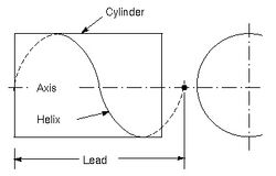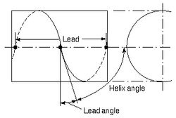 Lead is the axial advance of a helix or screw during one complete turn (360°)[1] The lead for a screw thread is the axial travel for a single revolution.[2]