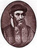 Johannes Gutenberg (1400 - 1468) was a German printer who invented the first printing press using movable type. He was also the first to use a press to print, by setting up a matrix for typecasting.