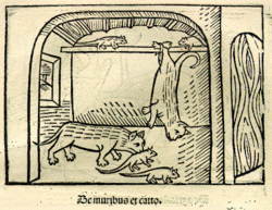 Murids feature in literature, including folk tales and fairy stories. In the Pied Piper of Hamelin, retold in many versions since the 14th century, including one by the Brothers Grimm, a rat-catcher lures the town's rats into the river, but the mayor refuses to pay him. In revenge, the rat-catcher lures away all the children of the town, never to return.[14] Mice feature in some of Beatrix Potter's small books, including The Tale of Two Bad Mice (1904), The Tale of Mrs Tittlemouse (1910), The Tale of Johnny Town-Mouse (1918), and The Tailor of Gloucester (1903), which last was described by J. R. R. Tolkien as perhaps the nearest to his idea of a fairy story, the rest being "beast-fables".[15] Among Aesop's Fables are The Cat and the Mice and The Frog and the Mouse.[16] In James Herbert's first novel, The Rats, (1974), a vagrant is attacked and eaten alive by a pack of giant rats; further attacks follow.[17]