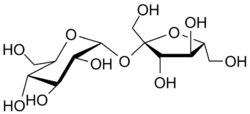 Sucrose, pictured to the right, is the most abundant disaccharide, and the main form in which carbohydrates are transported in plants. It is composed of one D-glucose molecule and one D-fructose molecule. The systematic name for sucrose, O-α-D-glucopyranosyl-(1→2)-D-fructofuranoside, indicates four things: