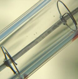 The electronic structure of tungsten makes it one of the main sources for X-ray targets,[102][103] and also for shielding from high-energy radiations (such as in the radiopharmaceutical industry for shielding radioactive samples of FDG). It is also used in gamma imaging as a material from which coded apertures are made, due to its excellent shielding properties. Tungsten powder is used as a filler material in plastic composites, which are used as a nontoxic substitute for lead in bullets, shot, and radiation shields. Since this element's thermal expansion is similar to borosilicate glass, it is used for making glass-to-metal seals.[19] In addition to its high melting point, when tungsten is doped with potassium, it leads to an increased shape stability (compared with non-doped tungsten). This ensures that the filament does not sag, and no undesired changes occur.[104]