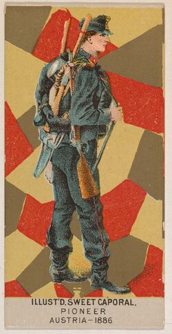Imperial German Army pioneers (Pioniere) were regarded as a separate combat arm trained in construction and the demolition of fortifications, but they were often used as specialist infantry, serving the role of combat engineers.[24] One battalion was assigned to each Corps.